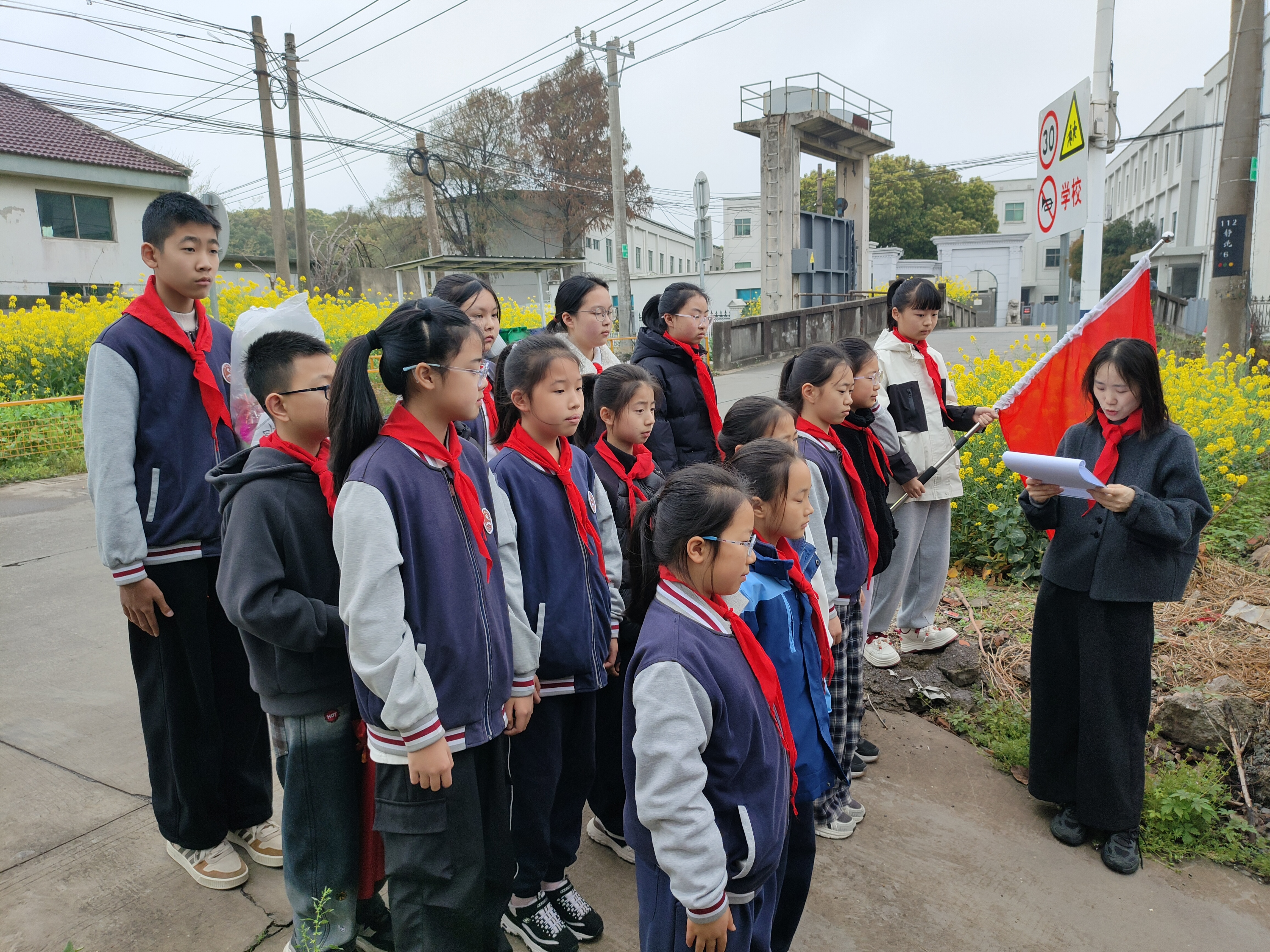 大队辅导员在纪念碑前深情讲述那段悲壮的历史,让革命教育“可触可感”。队员们认真聆听,神情肃然,在历史发生的土地上,真切感受信仰的力量。希望队员们珍惜来之不易的幸福生活,继承优良传统,不负先烈期望,做一名“仁爱、智慧、健康、上进”的黎小阳光少年。