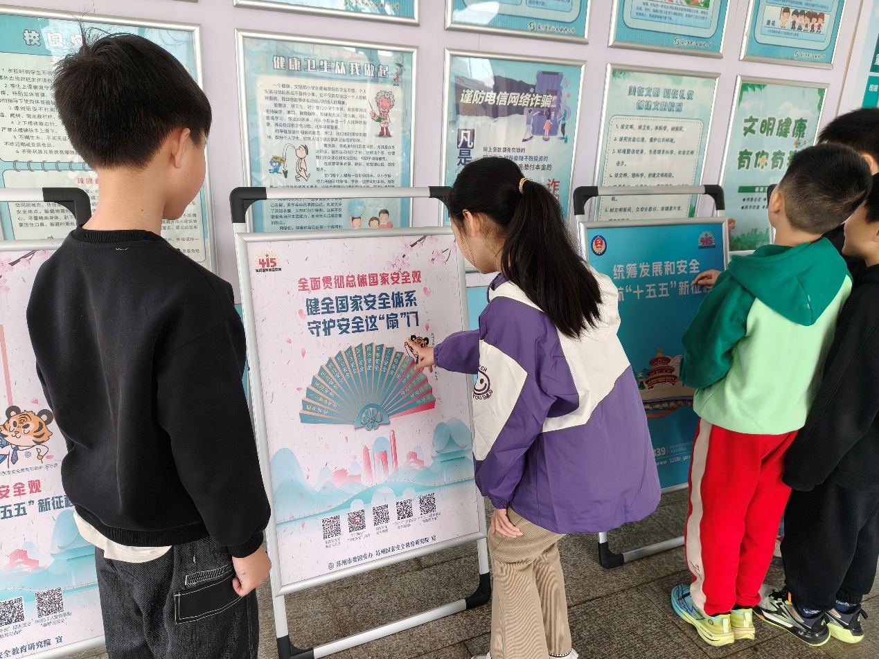 国旗下讲话结束后,学校组织各年级学生分批次参观了国家安全教育主题展板。展板内容涵盖了总体国家安全观各个方面,包括政治安全、经济安全、文化安全、网络安全、生态安全等,图文并茂、重点突出。通过这次活动,大家第一次系统地了解到国家安全涉及的广泛领域,也明白了自己作为小小公民,也能为维护国家安全贡献一份力量。